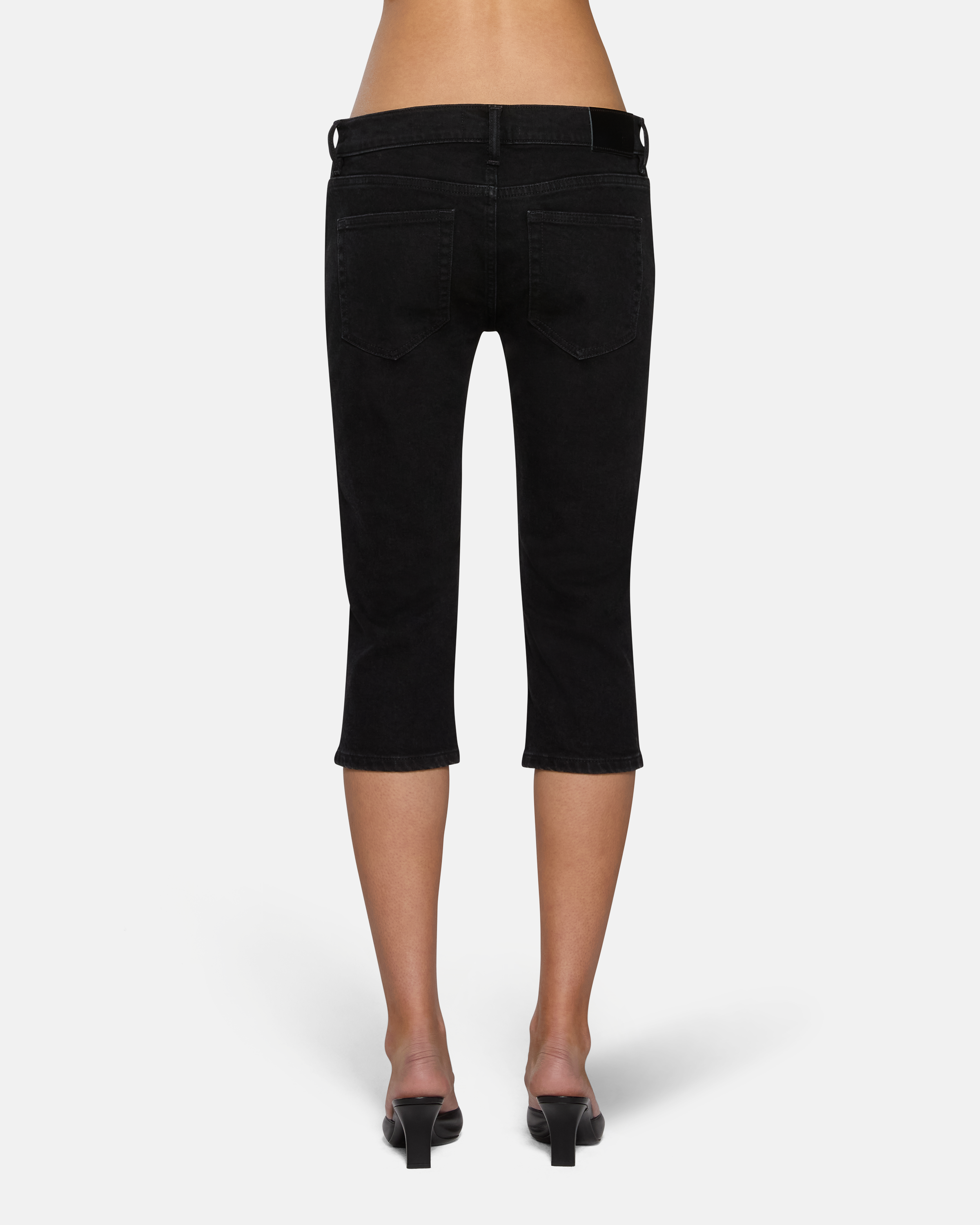 Our Lola Slim Capri is designed to sit low on the hips with a skinny fit through the leg and a clean, straight cigarette shape in our comfort stretch fabric. Fits true to size. Finished with a zipper fly and EB Denim flat rivet hardware.