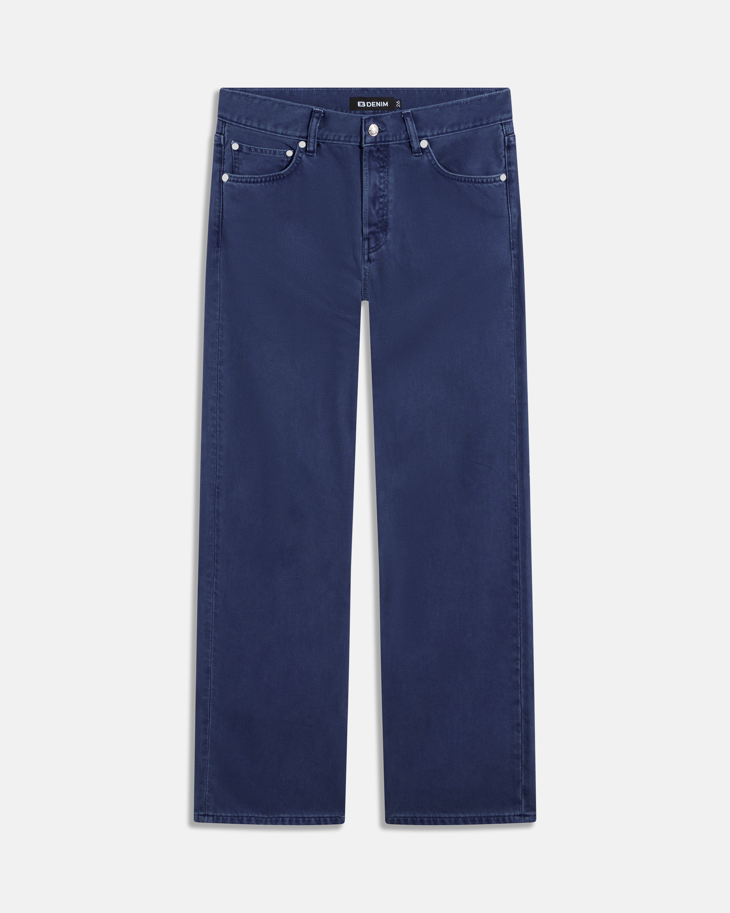 Our Low Rise Baggy Jean is designed to sit low on the hips with a straight, baggy leg that feels effortless and lived-in. It fits true to size for a relaxed shape, size down for a closer fit, or size up for an even more slouchy silhouette. Finished with a button fly and EB Denim flat rivet hardware.